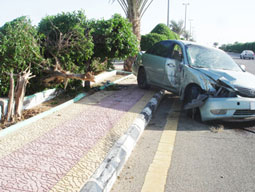 نجا قائد سيارة من نوع كامري بعد أن ارتطمت بأشجار الزينة إثر قفزها على الرصيف الواقع في طريق الملك عبدالعزيز في دخنة، وقد اقتلعت الأشجار من شدة الارتطام وتغير اتجاه السيارة. وقد باشر الحادث مخفر شرطة دخنة لعدم وجود مرور في المدينة، وتم نقل السيارة وفتح الطريق.