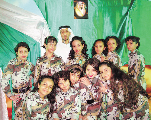 طفلات جازان يرتدين الزي العسكري في احتفال وطني شارك به أكثر من 200 طفل |