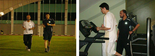 واختار التمياط نادي السد كونه مرتبطا بعقد مع قناة الجزيرة محللا فنيا، علما بأنه بدأ التمارين تحت إشراف الحسيني قبل أكثر من عشرة أيام. وفي هذا السياق أوضح المدرب الوطني عبداللطيف الحسيني أن الفترة الإعدادية الماضية لمدة أسبوعين بنيت على أسس معينة عطفا على ابتعاد اللاعب عن الركض لمدة تتجاوز السنة، وذلك بتكثيف تدريبات التحمل العام لحرق الدهون وإنزال الوزن إلى جانب الجري لمسافات طويلة وتمارين القوة في صالة الحديد بشكل تدريجي. وأضاف: بعض اللاعبين أمثال نواف التمياط ومن يمتازون بالموهبة لا يفقدون الحساسية على الكرة كثيرا رغم الانقطاع، وهو ما سيسهل تطبيق البرنامج في الفترة المقبلة، الذي سيتلخص في تخفيف الجري والتركيز على زيادة معدل السرعة مع إدخال بعض التطبيقات الكروية؛ ما سيضمن للاعب المشاركة في 60 دقيقة على الأقل في مواجهة انتر ميلان الإيطالي، رغم أن اللاعب في النهاية هو من يحدد مدة مشاركته. وأشار الحسيني إلى أن التمياط سيستكمل برنامجه الإعدادي بنادي السد القطري في الأسابيع المقبلة على أن ينخرط في تدريبات فريقه الهلال قبل مباراة اعتزاله ليصل لمرحلة جيدة من الجاهزية قبل يناير المقبل. وحول بادرته الرائعة بالمغادرة لقطر للإشراف على برنامج نواف التمياط أجاب الحسيني قائلا: كل شرائح المجتمع الرياضي بمختلف ميولهم وتوجهاتهم يجب أن تشارك وتساهم في إنجاح مهرجان الخلوق نواف التمياط ولاسيما أنه كسب احترام كل الأطياف بسمعته المميزة طوال مسيرته الرياضية، وكان مثالاً للاعب المخلص الذي خدم وطنه وناديه بكل تفانٍ. وشخصياً أعتبره تكريما لي أن أساهم في إعداد اللاعب، خصوصا أني أعرف حالة نواف جيدا من خلال تواجدي بالجهاز الفني بالفريق الهلالي في السنوات الأخيرة الماضية.