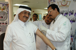 دشن مدير عام الشئون الصحية بجازان الدكتور محسن بن صديق الطبيقي حملة التطعيم ضد انفلونزا الخنازير وذلك بمركز حي الشاطئ الصحي بمدينة جازان، حيث تلقى د. الطبيقي جرعة من اللقاح وجميع مساعدين المدير العام بصحة جازان كبداية للحملة التي تنطلق في 28 مركزاً صحياً في جميع محافظات المنطقة في كل من صبيا والظبية وهروب والعارضة والحميرة وأحد المسارحة وأبوحجر وفرسان وبيش والحقو والعالية والريث وعيبان وبني مالك وعثوان وجبال الحشر والضالع والشاطئ والصفا ومحلية والمضايا والدرب وصامطة والطوال والموسم وأبوعريش والريان وضمد والتي خصصت لفئتي الحجاج والعاملين في موسم الحج من القطاعات الصحية. وقد تم تخصيص أيام معين