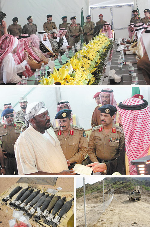 عسكرياً: واصل الجنود البواسل أداءهم البطولي الرائع في مطاردة المتسللين المسلحين ودك أوكارهم وتحصيناتهم بكفاءة وقدرات قتالية عالية.. وتمكنت القوات المسلحة أثناء تمشيطها للشريط الحدودي من العثور على منزل بجوار مركز خلب يستخدمه المتسللون لتخزين الأسلحة والذخيرة وعثر على بدل عسكرية وهويات مدنية وعسكرية مزورة وجارٍ التحقيق مع الأطراف المعنية لتحديد أهدافها وعلاقتها بالمتسللين المسلحين.. وكان المنزل المشبوه يضم (سوبر ماركت) ويتحجج عامل المحل بأنه لم يقفل أبوابه بالرغم من إجلاء السكان بأنه يبيع من القوات المسلحة المرابطة بالحدودة وبعد ورود أنباء عن وضعه تم مراقبة الموقع ومداهمته والتحفظ على كل المقبوضات.