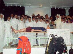 أكّد مدير عمليات حرس الحدود بالقطيف المقدم البحري صالح آل شيبان أن من أهم أسباب غرق الشباب هي مجازفتهم بالسباحة بعيداً عن الشاطئ إلى جانب عدم اهتمامهم بقراءة اللوحات الإرشادية والتحذيرية الموجودة على الشاطئ مستدلاً بذلك على وفاة (9) شبان على شواطئ المنطقة الشرقية إضافة إلى إنقاذ أكثر من 80 شاباً منذ مطلع العام الجاري، مؤكداً أن أغلبهم كانوا يمارسون السباحة في مناطق ممنوع السباحة بها، جاء ذلك في محاضرة ألقاها أمس تحت عنوان: (الغرق وطرق الإنقاذ وخطوات الإسعافات الأولية) التي يجب اتخاذها من قبل الأشخاص الذين ينتشلون الغرقى في مجمع ابن القيم التعليمي للبنين بسيهات وشملت المحاضرة تدريب طلبة المجمع على كيفية عمل التنفس الاصطناعي والإنعاش القلبي بواسطة مدربي الإنقاذ الرقيب شاكر أبو حيزة ووكيل الرقيب خالد العوض، وفي نهاية المحاضرة شكر مدير المجمع صالح الوادعي حرس الحدود لاهتمامه بالتوعية وقدم شهادات تقدير للمشاركين في المحاضرة.