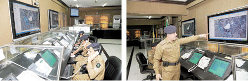 وأوضح النقيب أبو شنب إلى اعتماد عمليات الدفاع المدني في مكة المكرمة عدداً من أنظمة الاتصالات الحديثة، منها نظام الخرائط الجغرافية والمصورات الجوية التي تغطي منطقة مكة المكرمة بالكامل ويتيح القدرة، ليس فقط على التحديد الموقع، ولكن تشمل أيضاً عدداً كبيراً من المشتركين، بحيث إذا تم الإبلاغ عن تعرض منزل لخطر الحريق على سبيل المثال بغرفة العمليات، يتم توجيه أقرب فرقة للدفاع المدني مباشرة لاتخاذ اللازم بطريقة آلية، مؤكداً أن نظام الخرائط الجغرافية لم يطبق إلا بإدارة الدفاع المدني بالعاصمة المقدسة وإدارة الرياض، وفيما يتعلق بنظام البلاغات الإلكترونية وتوجيه الفرق الميدانية للدفاع المدني إلكترونياً، أشار النقيب وليد سامي أبو شنب إلى أنه تم تطبيق جزء من ذلك النظام وسوف يستكمل الجزء الآخر خلال الخطة المستقبلية، حيث سيتم تطبيقه على منطقة مكة المكرمة، موضحاً أن الدفاع المدني يتعامل مع جميع البلاغات بأقل جزء من الثانية.