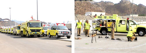 وخصصت قيادة الدفاع المدني بالحج فرقاً متخصصة لحماية الأنفاق والتدخل السريع لمواجهة الحوادث الطارئة الناجمة عن الزحام أو نقص الأوكسجين أو انقطاع التيار الكهربائي أو أي أعطال في فتحات التهوية ومخارج الطوارئ بها.