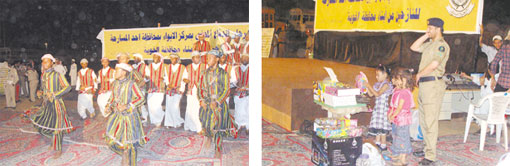 وأوضح العميد الصقيل أن مديرية الدفاع المدني بالمنطقة ممثلة باللجنة الإعلامية أقامت على مدى ثلاثة أيام مسرح ترفيهي للقاطنين بمخيم أحد المسارحة من العوائل والأطفال تخلله بعض البرامج الترفيهية.