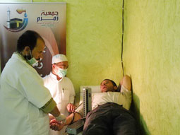وبيّن المطرفي أن الجمعية قامت بتجهيز عيادة طبية متخصصة بكافة التجهيزات والكوادر الطبية من مستلزمات ومحاليل وأدوية بالإضافة إلى الأطباء والممرضين الذين يقومون بتقديم كافة أنواع الكشوفات الطبية، حيث يتم الكشف على المرضى من الحجاج في مقر سكنهم وتقديم العلاج اللازم.