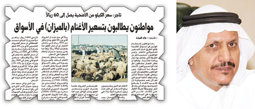 وأضاف الزنيدي: نرغب أن يطلع المواطنون على مؤشر الأمانة لأسعار الأغنام للوقوف على الأسعار الحقيقية وقد أوجدنا 13مركزا لبيع الأضاحي للتسهيل على المواطنين شراء الأضاحي دون عناء ومشقة. وأكد الزنيدي أن الأمانة اتفقت مع عدد من الشركات لتحديد أسعار الأغنام لمدة أربعة أيام (7، 8، 9، 10) من ذي الحجة والهدف من وضع المؤشر ليطلع المواطن على الأسعار السائدة وكذلك إيجاد نوع من المنافسة بين شركات الأغنام.