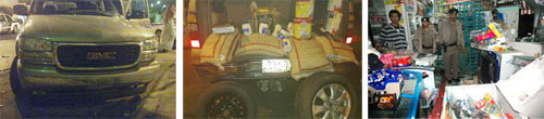 تمكنت فرق دوريات الأمن بمنطقة الرياض من القبض على شخصين في العقد الثاني من العمر تورطوا في سرقة سيارة واستخدامها في محل تجاري وثلاثة آسيويين بحوزتهم كيابل كهرباء مسروقة ومقصات حديدية. أتت عمليات القبض في ساعة متأخرة من ليلة أمس وخلال عمل فرق دوريات الأمن بمنطقة الرياض في حي الملز لاحظت سيارة جي إ م سي صالون تقف أمام تموينات تجارية بشكل عرضي مما يدعوا للاشتباه في وضعها وعند اقتراب الفرقة من السيارة شاهدت شخصين يقومون بتحميل أغراض من التموينات .ففر الجانيان على السيارة وتمت ملاحقتهما وتعطيل سيارتهما وإيقافها بالقوة عند ذلك ترجل الجانيان على الأقدام وهربا داخل الحي؛ حيث تمكنا من الدخول لأحد المنزل واختبآ فيه تم محاصرة الحي من جميع المنافذ وتحديد المنزل الذي دخلاه فتم ضبطهما بعد التنسيق مع صاحبه، وبعد التأكد من أبواب التموينات اتضح أن القفل مكسور وملقى على الأرض حيث قاما بتحميل كميات كبيرة من محتويات التموينات وإطارات احتياطية جديدة ضبطت بداخل السيارة التي يستقلانها والتي تبين أنها هي الأخرى مسروقة ومعمم عنها من مركز شرطة العليا.. سلم الشخصان والمضبوطات لمركز شرطة الملز.