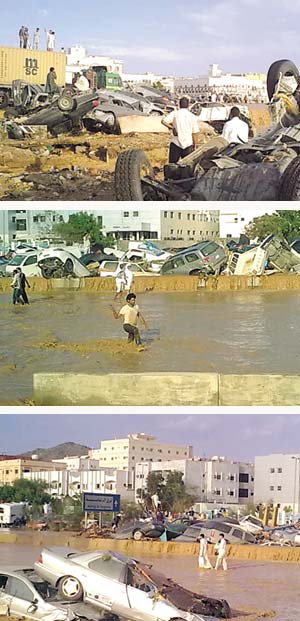 أكدت مصادر مطلعة في الدفاع المدني بجدة ل(الجزيرة) وفاة أكثر من 25 شخصاً جراء الأمطار التي شهدت مدينة جدة صباح أمس الأربعاء على كامل أجراء المدينة، حيث بلغ ارتفاع الأمطار 70 سنتيمتراً واستمر هطول الأمطار لما يزيد على أربع ساعات حسب ما سجلته أجهزة القياس، في حين تعيش 90 في المئة من شوارع جدة في حالة شلل تمام بعد إغلاق طريق الحرمين وطريق الملك عبدالله وطريق مكة، وقد سجلت الحركة المرورية في جدة ارتباكاً ملحوظاً عانى منه جميع مرتادي الطرق الرئيسية التي غمرتها مياه الأمطار وعطلت الحركة المرورية فيها في ظل تأخر آليات الأمانة في مباشرة عمليات شفط المياه، ولعدم وجود أي شبكة تصريف لمياه الأمطار في محافظة جدة التي تعاني كثيراً عند نزول الأمطار، في حين أغلق حي الروابي وكليو 14 وقويزة والجامعة وجميع أحياء جنوب جدة، كما عاش 40 في المئة من سكان جدة لليلة الأمس بدون كهرباء بعد أن غمرت المياه المولدات.