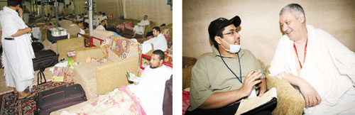 الحاج محمد أهني من الجزائر قال: لقد مَنّ الله علي بالحج قبل عشرين عاماً، وها أنا اليوم هنا في المشاعر، والسعادة والسرور لا يسعاني.. مؤكداً أن الخدمات خلال تلك الفترة، التي تزيد على عقدين من الزمان مختلفة تماماً؛ ففي الماضي كان الناس يواجهون معاناة في الحج، خاصة في التنقل والوصول إلى هذه البلاد المباركة. مضيفاً: اليوم - ولله الحمد - كل الخدمات متوافرة؛ ففي المخيمات يتوافر بها كل ما لذّ وطاب من المأكولات، والمحاضرات الدينية وحتى الطبية سواء ما توفره مؤسسات الحج أو حكومة المملكة.