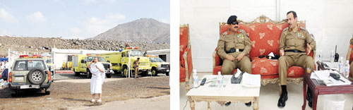 أعلن مدير عام الدفاع المدني الفريق سعد بن عبدالله التويجري أنه بالتوفيق الله تعالى نجحت قوات الدفاع المدني في تنفيذ خطة انتشارها بمشعر عرفات لتأمين سلامة حجاج بيت الله الحرام يوم أمس. مثمنا معاليه جهود حكومة خادم الحرمين الشريفين الملك عبدالله بن عبدالعزيز وسمو ولي عهده الأمين وسمو النائب الثاني وزير الداخلية, في خدمة حجاج بيت الله الحرام وتوفير كل ما يلزم من إمكانات مادية وبشرية لتيسير أداء الحجاج مناسكهم في جو من الطمأنينة والأمن, مؤكداً أن هذه الجهود تمثل ملمحاً مشرقاً وأصيلاً في توجهات بلادنا المباركة والتي شرفها الله باحتضان الحرمين الشريفين.