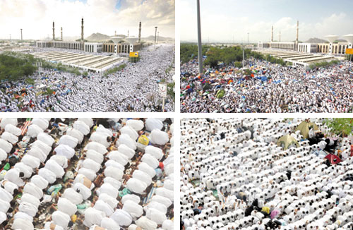 توافدت جموع من حجاج بيت الله الحرام منذ وقت مبكر أمس على مسجد نمرة لأداء صلاتي الظهر والعصر جمعاً وقصراً؛ اقتداءً بسُنَّة نبينا محمد - صلى الله عليه وسلم - والاستماع إلى خطبة عرفة.