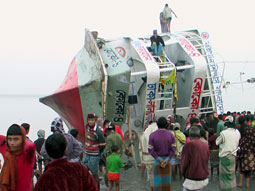 وقال المسؤول في الإدارة المحلية مصباح الإسلام لوكالة فرانس برس عبر الهاتف من نظير بورا 250كم جنوب العاصمة دكا انتشلنا 33 جثة، ووقع الحادث فيما كانت العبارة ام.في كوكو-4 إحدى أكبر سفن النقل النهري في البلاد، على وشك الوصول إلى جزيرة بولا (جنوب) وهي منطقة ساحلية تبعد 250كم جنوب العاصمة دكا، كما ذكر حسين قائد الشرطة المحلية لوكالة فرانس برس. وأضاف: كانت العبارة تضيق بأكثر من ألف شخص على متنها، ولدى وصولها إلى ميناء نظير بور النهري، جنحت وغرقت جزئياً بسبب ضغط الحشد.