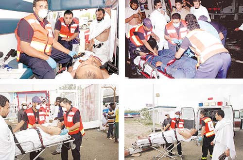 نقلت فرق هيئة الهلال الأحمر السعودي منذ مطلع شهر ذي الحجة وحتى يوم أمس أكثر من 6145 حالة إسعافية منها 166حالة بواسطة الدراجات النارية، وكان عدد الحالات الإسعافية التي باشرتها فرق الهلال الأحمر يوم أمس فقط قد بلغ 1456 حالة منها 646 حالة تم نقلها إلى المستشفيات القريبة بالمشاعر المقدسة وأكثر من 439 حالة تم تقديم الرعاية الإسعافية لها في الميدان وبلغ عدد البلاغات التي تعاملت الدائرة الطبية معها في غرفة العمليات أكثر من371 حالة وتضمنت الإحصائية اليومية التي تصدرها هيئة الهلال الأحمر السعودي كذلك مباشرة فرق الهيئة لبعض الحالات التي خلفتها حوادث السير وحوادث الغرق والحرائق بالإضافة إلى حوادث السقوط وبعض الحوادث الأمنية. حيث بلغ عدد الحالات الناتجة عن حوادث السير80 حالة وأكثر من 5 حالات سقوط و114حالة بحوادث أخرى و2 حالات ناتجة عن الحريق و47 حالة سقوط و5 حالات إصابات عمل. أما على صعيد الحالات المرضية فقد اعتلت الأمراض التنفسية الحالات المرضية التي نقلتها فرق الهلال الأحمر؛ فقد بلغت 117 حالة وحالات الضعف العام 139 حالة بينما بلغت الأمراض الهضمية أكثر من 92 حالة والأمراض الحرارية 61 حالة والأزمات القلبية 18 حالة و322 حالات مرضية أخرى بالإضافة إلى نقل حالة مصابة بأنفلونزا الخنازير. وقد أشادت الهيئة في بيانها اليومي بالمستشفيات التي تتجاوب معها دائماً أثناء موسم الحج لاستقبال الحالات الإسعافية فقد نقلت فرق الهيئة يوم أمس أكثر 65 حالة إلى المراكز الصحية التابعة لوزارة الصحة و103 حالة إلى مستشفى النور و176 حالة إلى مستشفى منى الجسر و60 حالة إلى مستشفى الملك فيصل ومستشفى منى الوادي 67 حالة ومستشفى الملك عبدالعزيز 52 حالة.