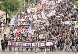 تظاهر مئات من الصحفيين الفلبينيين ونشطاء حقوق الإنسان بالقرب من القصر الرئاسي أمس الاثنين مطالبين بتحقيق العدالة لثلاثين من زملائهم كانوا بين 57 شخصا قتلوا الأسبوع الماضي في جنوب الفلبين المضطرب.وقال بيني انتيبوردا رئيس نادي الصحافة (العدالة مطلبنا... العالم بأسره أبدى امتعاضه مما حدث. ورجال الإعلام الذين قتلوا في المذبحة لم يكونوا مسلحين).
