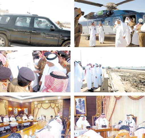 وأوضح سموه في تصريح صحفي عقب الجولة أن خادم الحرمين الشريفين الملك عبدالله بن عبدالعزيز آل سعود وجه بوضع جميع الإمكانات تحت تصرف اللجان التي شكلت لخدمة ومساعدة المتضررين من هذه السيول من ناحية إيوائهم وإسكانهم وصرف الإعانات لهم لتمكينهم من العيش الكريم كغيرهم في هذه البلاد التي يحرص قادتها دائماً على راحة وسلامة المواطن في كل الأحوال.