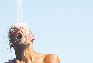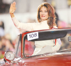 نجمة السينما الأمريكية سوزان لوتشي خلال استعراض كرنفالي لأعياد الميلاد في هوليوود أمس. |