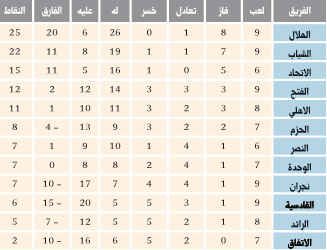 ترتيب فرق دوري زين بعد الجولة التاسعة