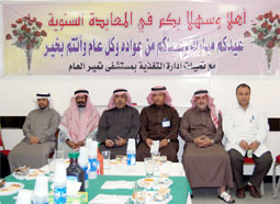 أقام مستشفى تمير العام أمس السبت حفل المعايدة السنوي احتفالاً بعيد الأضحى المبارك وذلك بحضور مدير المستشفى إبراهيم بن سعود السلطان ونائب المدير عبدالله بن علي المنيع ومديري ورؤساء الأقسام بالمستشفى، حيث تبادل الجميع التهاني بالعيد، وتناولوا المرطبات والمشروبات التي أعدت بهذه المناسبة، وفي نهاية الاحتفال قدم مدير مستشفى تمير شكره وتقديره لجميع الكوادر الطبية التي عملت خلال إجازة العيد، وعلى رأسهم نائب المدير والذين بذلوا جهوداً طبية وقاموا بتقديم أفضل الخدمات الصحية على أكمل وجه.