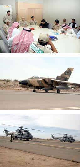 نظمت القوات الجوية الملكية السعودية ممثلة في قاعدة الملك خالد الجوية بالقطاع الجنوبي الشؤون العامة برنامج زيارة للقاعدة الجوية اطلع فيها الإعلاميين على مدى القوة الجوية والجاهزية العظيمة التي تتمتع بها قواتنا كما كشفت الجولة عن مدى قوة الطائرات السعودية. وكان في استقبال الوفد الإعلامي قائد القطاع الجنوبي للقوات الجوية اللواء الركن الطيار محمد صالح العتيبي الذي رحب بالإعلاميين، وبين أن عمل القوات الجوية جزء لا يتجزأ من عمل جميع القوات المشاركة (مقاتلة أو اسناد)، كما أن القوات الجوية بدأت عملها من الساعات الأولى للمواجهات وحتى اللحظة كما أن العمل المشترك هو ديدن القوات الجوية. وبعد ذلك تم الانتقال إلى مركز وعمليات القطاع الجنوبي الذي يشهد تطورا ملحوظا، ثم زيارة السرب السادس وخط الطيران ومشاهدة إقلاع وهبوط الطائرات التي تعد من أفضل الطائرات على مستوى العالم ومجهزة بتقنيات عالية تقوم بمباغتة الأعداء في لحظات.