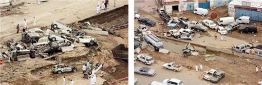 أوضح العقيد مسفر الجعيد المتحدث الإعلامي لشرطة جدة ل(الجزيرة) بأن مدينة جدة تشهد هذه الأيام وبشكل مكثف استنفاراً أمنياً على كافة الأصعدة للحفاظ على ملكيات وسيارات المنكوبين، في ظل انتشار عصابات تقوم بسرقة المنازل وسرقة المسجلات وكفرات و إكسسوارات السيارات ومستلزماتها في الأيام الماضية من قِبل بعض العصابات أو الأفراد الذين استغلوا تجمعها في أماكن محددة جراء انجرافها بالسيول الماضية.