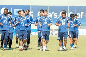 يضع صباح اليوم مدرب الفريق الكروي الأول بنادي الهلال البلجيكي إيريك جريتيس الخطوط العريضة لطريقة اللعب التي سيشارك بها أمام الاتحاد مساء الخميس المقبل ضمن منافسات الجولة الحادية عشرة من مسابقة دوري (زين) للمحترفين في المران الذي سيحاط بالسرية التامة، حيث يتوقع آن يغير جريتيس في تشكيل الفريق بالزج بلاعب الوسط أحمد الفريدي من بداية المواجهة فيما لم تتضح الرؤية حيال إمكانية مشاركة خالد عزيز الذي شارك في لقاء الفريق الأولمبي البارحة الأولى أمام الوطني، وينتظر أن يكون تدريب اليوم هو الرئيسي قبل المباراة فيما سيكتفي الجهاز الفني ببعض التطبيقات والتدريبات الترفيهية في مران الغد الأخير الذي سيستمر فيه الإغلاق قبل أن يدخل جميع أفراد الفريق في معسكر المباراة بمقر النادي.