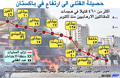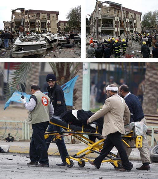 أوقعت 5 انفجارات دامية 127 قتيلاً وأصابت 450 جريحاً أمس الثلاثاء غالبيتها انتحارية بسلسلة تفجيرات بواسطة سيارات مفخخة في يوم دام هز بغداد معيداً إلى الأذهان اعتداءات الأربعاء والأحد الداميين، بعد يومين من إقرار قانون ينظم ثاني انتخابات تشريعية منذ سقوط النظام السابق ربيع