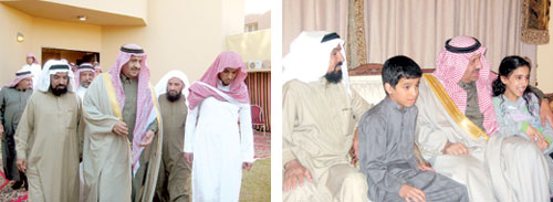 وكان في استقبال سموه والد الشهيد الشيخ صالح العويد وإخوة الشهيد وعدد من أبناء أسرة العويد.
