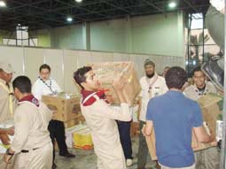 ومجموعة بمركز جدة الدولي للمعارض باستقبال المواد التموينية وتوزيعها على الأسر بأماكن سكنهم ومجموعة بالإدارة العامة للدفاع المدني لتنظيم المراجعين وبهمم عالية وروح متفانية وشعور بالمسؤولية يواصل الكشافة والقادة في محافظة جدة أعمالهم التطوعية على مدار الساعة.