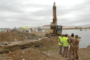 إلى ذلك قامت أمانة جدة بإنشاء أربع مصدات ترابية وبعض العقوم، يبلغ مستوى المياه فيها عمق مترين ونصف المتر،كما شقت مصارف جانبيه لكل عقم ماء مع مسار الوادي بدرجة 45 درجة مئوية. وقد تم شق أول قناة لتصريف المياه بعرض 3 أمتار بعد أن وجد أن أعمال الشفط بالمواتير والناقلات لن يكون مجديا، وتسييل المياه نحو الوادي لتتشربها التربة.