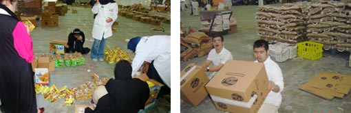 فقد انضم ثمانية أطفال (أربعة أولاد وأربع بنات) يرافقهم مشرفون، إلى المتطوعين العاملين في مركز الحارثي للمعارض، وذلك للمشاركة في تصنيف المعونات والمواد الغذائية والبطانيات وغيرها من مواد التي تم التبرع بها بكميات كبيرة من أهل الخير والشركات والمصانع لمتضرري الأمطار والسيول التي ضربت مدينة جدة، مؤخراً، والتي خلفت وراءها عددا كبيرا من الأسر بدون مأوى، وأودت بحياة البعض وتسببت في فقدان البعض الآخر.
