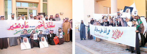 احتفلت مدارس قطاع رفحاء التعليمي صباح أمس بعودة صاحب السمو الملكي الأمير سلطان بن عبد العزيز ولي العهد نائب رئيس مجلس الوزراء وزير الدفاع والطيران والمفتش العام إلى أرض الوطن سالماً معافى، وقد اشتمل هذا الاحتفال على مسيرات طلابية مشياً على الأقدام لمقر المحافظة من مدرسة عبد الرحمن بن صخر الابتدائية بمعية مديرها ساير العنزي والمعلمين رافعين لوحة كبيرة كتب عليها (حمداً لله على سلامة سلطان)، ومتوشحين بالأعلام وصور لسلطان الخير ابتهاجاً بسلامته وعودته إلى أرض الوطن الغالي.