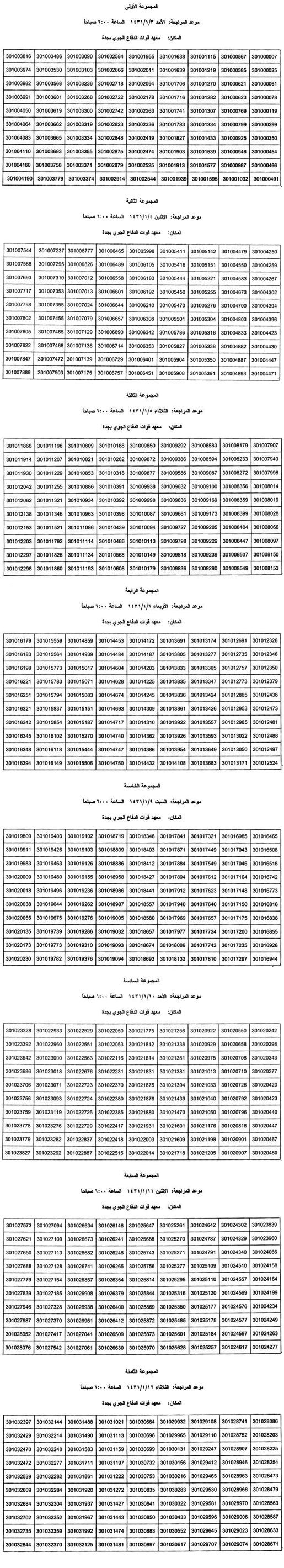 وفيما يلي أرقام المقبولين ومواعيد المراجعة.