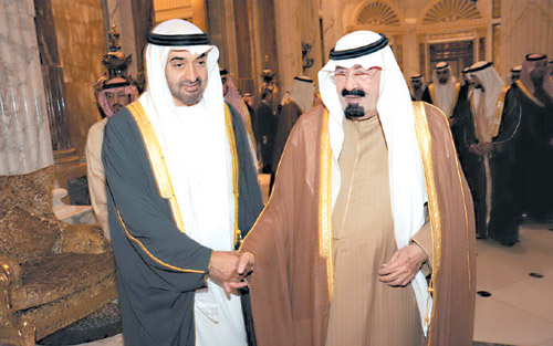 استقبل خادم الحرمين في قصره بالرياض أمس الشيخ محمد بن زايد ولي عهد أبو ظبي نائب القائد الأعلى للقوات المسلحة بدولة الإمارات يرافقه الشيخ حمدان بن محمد آل مكتوم ولي عهد إمارة دبي والشيخ سلطان بن محمد القاسمي ولي عهد ونائب حاكم إمارة الشارقة و الشيخ سعود بن صقر القاسمي ولي عهد ونائب حاكم إمارة رأس الخيمة والشيخ راشد المعلا ولي عهد إمارة أم القوين والشيخ محمد الشرقي ولي عهد إمارة الفجيرة والشيخ عمار النعيمي ولي عهد إمارة عجمان والشيخ سيف بن زايد آل نهيان نائب رئيس مجلس الوزراء وزير الداخلية.