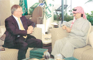 استقبل صاحب السمو الملكي الأمير الوليد بن طلال بن عبد العزيز آل سعود رئيس مجلس إدارة شركة المملكة القابضة، في مكتب سموه سعادة سفير الولايات المتحدة الأمريكية الجديد لدى المملكة العربية السعودية السيد جيمس سميث.