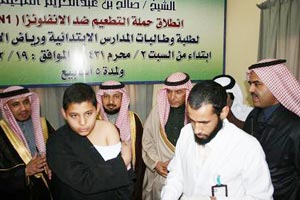 دشَّن وكيل إمارة منطقة الحدود الشمالية الشيخ صالح بن عبدالكريم المحيميد صباح أمس، بحضور المدير العام للتربية والتعليم عبدالرحمن بن أحمد الروساء والمدير العام للشؤون الصحية بمنطقة الحدود الشمالية الدكتور فيصل بن علي الثبيتي والمدير العام للتربية والتعليم للبنات الأستاذ نواف بن عبدالكريم السالم، حملة التطعيم ضد إنفلونزا الخنازير (H1N1)، التي تشمل (70) ألف طالب وطالبة بمنطقة الحدود الشمالية. وتستمر الحملة لمدة خمسة أسابيع. ودعا وكيل إمارة منطقة الحدود الشمالية بالسلامة لجميع أبناء وبنات الوطن.