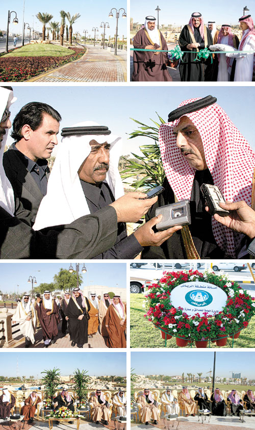 وفور وصوله قام بقص الشريط إيذاناً بافتتاح الحديقة وتجول في أرجائها واستمع إلى شرح عن محتوياتها من مدير عام الحدائق وحماية البيئة د. إراهيم الدجين حيث أقيمت على مساحة 150 ألف متر مربع وتهدف إلى إتاحة متنفس للمواطنين وإضفاء لمسة جمالية ومتعة بصرية لأهالي مدينة الرياض.