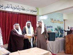 رعى مساعد مدير التربية والتعليم بمحافظة الدوادمي صالح محمد الرشيد حفل تكريم الطلاب المتفوقين بقطاع نفي وذلك على مسرح متوسطة وثانوية نفي وبحضور رؤساء ومديري الدوائر الحكومية وعدد من أولياء أمور الطلاب. وقد بدأ الحفل بالقرآن الكريم, ثم كلمة لمدير مكتب التربية والتعليم بنفي محمد راجح الدماسي، ثم تلا ذلك كلمة التوجيه والإرشاد ألقاها بندر العازمي وبعدها كلمة الطلاب المتفوقين وألقاها عنهم الطالب محمد عيد السحيل. وخلال الحفل ألقى الشاعر سلطان العرط قصيدة بمناسبة شفاء وعودة سمو ولي العهد. وفي الختام كرم مساعد مدير التربية والتعليم الطلاب المتفوقين وتم توزيع الدروع التذكارية والشهادات التقديرية، كما تم خلال الحفل تكريم صحيفة الجزيرة وتسلم التكريم مندوب صحيفة الجزيرة بنفي.