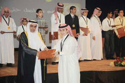 أكد مدير عام الهيئة الملكية بالجبيل الدكتور مصلح بن حامد العتيبي أن الخدمات التعليمية في المدينة تلقى الاهتمام الكبير وهناك توجيه من سمو رئيس الهيئة الأمير سعود بن عبدالله بن ثنيان آل سعود بتطوير وتدريب الكفاءات التعليمية، وأضاف سعادته خلال تكريمه الاثنين الماضي للطلاب المتفوقين للعام الدراسي المنصرم: أننا نجد -ولله الحمد- مدارس الهيئة من المدارس النموذجية في أنشطتها الصفية واللاصفية، وما تحقيق الطلاب النتائج الإيجابية على مستوى المنطقة الشرقية والمملكة إلا خير دليل على إيجابية الخدمات التعليمية. هذا وقد بدأ الحفل بمسيرة الطلاب المتفوقين، ثم أعقبها آيات من القرآن الكريم، تلا ذلك عرض مرئي عن ولي العهد صاحب السمو الملكي الأمير سلطان بن عبدالعزيز - حفظه الله- بمناسبة عودته سالماً لأرض الوطن، ثم ألقى مدير إدارة الخدمات التعليمية الأستاذ عبدالعزيز المسند كلمة رحب فيها بالحضور وهنأ الطلاب المكرمين وبين أن مثل هذا التكريم له أثر طيب في النفوس، ويدفع إلى التنافس الشريف، ويعزز الجوانب الإيجابية، ويشجع على التنافس الدراسي بين الطلاب في مختلف المراحل الدراسية.