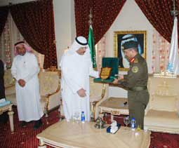 استقبل مدير جامعة القصيم الأستاذ الدكتور خالد بن عبدالرحمن الحمودي بمقر الجامعة في مدينة بريدة صباح الاثنين مدير معهد طيران القوات البرية بمنطقة القصيم العميد ناصر بن عبيد عفيف والوفد المرافق له ويضم عشرين ضابطاً من دورة الضباط المتقدمة الخامسة عشرة. وحضر اللقاء وكيل الجامعة الأستاذ الدكتور أحمد بن علي الرقيبة ووكيل الجامعة للدراسات العليا والبحث العلمي الأستاذ الدكتور عبدالرحمن بن صالح الواصل ومدير إدارة العلاقات العامة والإعلام الجامعي مصطفى المشيقح. وقد رحب الحمودي بالضيوف وقدم لهم نبذه عن نشأة الجامعة والكليات التابعة لها والخطوات الحثيثة التي تتخذها لتكون في مصاف الجامعات المتميزة من خلال وضع خطه إستراتيجية عشرية لما يجب أن تكون عليه من خلال تطبيق معايير الجوده العالمية للكليات والأقسام المختلفة. بعد ذلك أجاب الدكتور الحمودي على أسئلة الزوار، الذين قاموا بجولة في أنحاء الجامعة. وفي نهاية الزيارة قدم رئيس الوفد إعجابه وتقديره لما شاهده من تطور ملحوظ تشهده جامعة القصيم، ومن جانبه قدم مدير الجامعة حقيبة الجامعة للعميد ناصر عفيف.