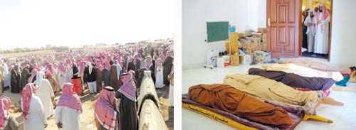 وكانت الأحساء قد استقبلت جثامين المتوفين مساء يوم أمس في طائرة الإخلاء الطبي بمطار الأحساء بحضور عدد من المسؤولين تمهيداً لمواراتها الثرى وقد نصبت أسر الضحايا خيام العزاء في الأحساء وفي العضيلية داعين الله أن يغفر للقتلى ويشفي المصابين.