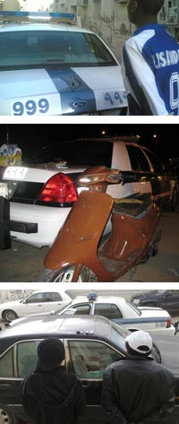 نجحت فرق دوريات الأمن مساء أمس في القبض على عدد من الجناة.. ومن بينهم جانيان في العقد الثاني من العمر قاما بخطف حقيبة سيدة.. وأربعة آخرون يحملون عملة مزورة.. وجانٍ بحوزته حبوب مخدرة.. وآخر قام بسرقة جوال ومبلغ مالي من سيارة.. وجانٍ يسرق السيارات بواسطة مطرقة حديدية، كما تمكنت فرق دوريات الأمن من إلقاء القبض على مجموعة من الجناة في أنحاء مختلفة من مدينة الرياض.. كان أولها في غرب الرياض، حيث تمكنت فرق دوريات الأمن هناك من الإيقاع بجانيين تخصصا في سرقة حقائب السيدات، وهن يسرن في الشارع.. مستخدمين في ذلك دراجة نارية، حيث لاحظت الفرق الشخصين على دراجة نارية ويحملان حقيبة نسائية سوداء فتم تضييق الخناق عليهما وإجبارهما على الوقوف.. وبعد التأكد من الحقيبة اتضح أنها لسيدة من خلال وجود هاتفها الجوال وبطاقة العمل ومبلغ مالي داخل الحقيبة، حيث حضرت صاحبة الحقيبة في مركز شرطة السويدي وشبرا مع زوجها وتعرفا على الجناة وسُلم الجانيان للمركز مع المضبوطات والدراجة النارية.