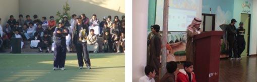 ثم ألقى الطالب خالد التركي كلمة بعنوان: سلطان الخير مسيرة وإنجازات، وبعد ذلك وضع عرض مصور عن أمير الإنسانية سلطان الخير. وفي الجانب الرياضي قامت المدارس بعمل دوري على كأس الأمير سلطان بخروج المغلوب.. وقد قام الأستاذ عبد العزيز السياري مدير المدارس.. والأستاذ حمد المنصور بتسليم الكأس والميداليات للفائزين.