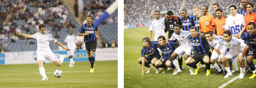 وتقدم الأمير سلطان بن فهد الرئيس العام لرعاية الشباب والأمير نواف بن فيصل نائب الرئيس العام لرعاية الشباب الحضور إلى جانب عدد من المسؤولين الرياضيين في المملكة والخليج.. وبين شوطي المقابلة كرم سمو الرئيس العام اللاعب المعتزل كما تبودلت الدروع التذكارية.