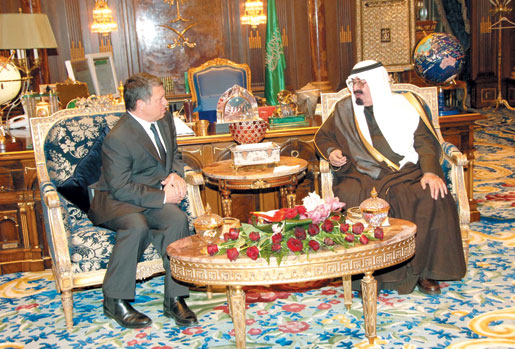 بحث خادم الحرمين وأخوه ملك الأردن في الرياض مساء أمس مجمل الأوضاع على الساحة العربية وفي مقدمتها تطورات القضية الفلسطينية والجهود المبذولة لتحقيق السلام في المنطقة وكذلك جهود الدول العربية لتعزيز العلاقات الأخوية فيما بينها وتنقية أجوائها وحل قضياها دون تدخل أطراف خارجية.