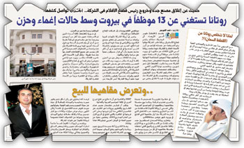 علمت (الجزيرة) أن ما يقرب من 48 موظفاً في مصنع روتانا بجدة قد تم الاستغناء عن خدماتهم في واحدة من خطوات تصحيح الوضع التي تقول روتانا بأنها تنتهجها لتخفيض تكلفة المصروفات وتعزيز المدخول الربحي للشركة التي تدخل أيام السنة الأولى وقد استغنت عن موظفين في مكاتبها ببيروت والقاهرة بحسب ما انفردت به (الجزيرة)