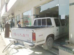 أراد مسن ثمانيني إيقاف سيارته «بيك أب» أمام بنك محلي في السوق المركزي بحفر الباطن الأحد الماضي فاصطدم بواجهة البنك، مما أدى إلى تهشم الواجهة الزجاجية بالكامل، حيث تفاجأ العملاء وموظفو البنك باقتحام السيارة للبنك، وكان المسن قد فقد السيطرة على السيارة لتصطدم بواجهة البنك وكان برفقته عاملة منزلية من الجنسية الإثيوبية تريد تحويل مبلغ مالي، ونتج عن الحادث تلفيات في واجهة البنك ولم يصب أحد بأذى وقد باشر الحادث مرور حفر الباطن.