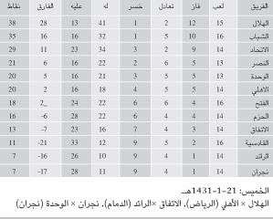 ترتيب فرق الدوري بعد مباريات أمس