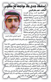 كشفت التحقيقات الأمنية أن الشخص الذي تم ضبطه؛ نظير عمليات البحث عن قاتل رجل الأمن الجندي (سلطان الجعيد) بمحافظة تربة شرق جنوب الطائف، تأكد بشكل قاطع أنه هو المطلوب الذي أطلق النار عليه؛ حيث اعترف أثناء التحقيقات التي خضع لها، فيما تمت إحالته إلى قسم التحريات