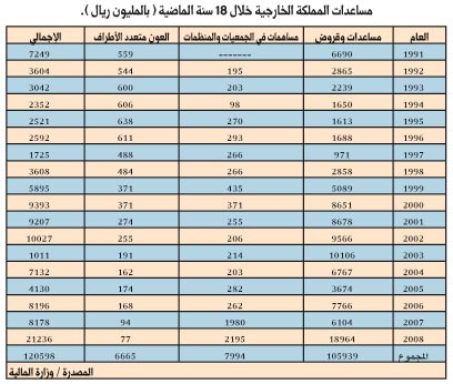 وعلى الصعيد نفسه أوضحت مصادر مصلحة الإحصاءات العامة أن صادرات المملكة غير النفطية ارتفعت منذ منتصف عام 2009 بنسبة3% وبلغت 3222 ألف طن، مقابل 3138 ألف طن، من العام الماضي 2008، فيما أشارت إلى أن قطاع الصناعات التحويلية غير البترولية في المملكة حقق نموا قدره 5.4 في المائة خلال عام 2008م، وزادت إسهام القطاع الصناعي بشكل كبير في صادرات المملكة من السلع غير البترولية، حيث بلغت قيمة الصادرات السلعية غير البترولية 115 بليون ريال في العام 2008م، بزيادة قدرها 10% عن العام السابق له، وذلك بعد أن حققت الصناعات المعتمدة على المنتجات النفطية مثل الصناعات البتروكيماوية والأسمدة نجاحا كبيرا على مستويات الأسواق العالمية. وعلى مستوى القروض والمساعدات الخارجية أوضحت المصادر الإحصائية أن ما قدمته المملكة بلغ حوالي 21.2 مليار ريال عام 2008 بارتفاع بلغت نسبته 159.7% مقارنة بالعام السابق له. وقد شكلت المساعدات والقروض المقدمة خلال عام 2008م الجزء الأكبر بقيمة بلغت 19 مليار ريال وبنسبة 89.3% من الإجمالي، وبارتفاع بلغت نسبته 210.7% مقارنة بعام 2007م. وبلغ إجمالي مساهمات المملكة في الجمعيات والمنظمات خلال عام 2008م نحو 2.2 مليار ريال وبنسبة 10.3% من الإجمالي، وبارتفاع بلغت نسبته 10.9 % مقارنة بالعام السابق، كما بلغ إجمالي مساعدات المملكة من خلال العون متعدد الأطراف في عام 2008م نحو 77 مليون ريال وبنسبة 18.1% من الإجمالي، وبانخفاض عن سابقه. وعلى مدى ثماني عشرة سنة ماضية كان للمملكة حضور كبير في الساحة العالمية، وتقديم القروض الميسرة والمساعدات الإقليمية والعالمية، حيث بلغ ما قدمته من عام (1991 حتى 2008) حوالي (120.6) مليار ريال منها (حوالي 106) مليارات ريال للمساعدات والقروض بنسبة تبلغ 78.8% من إجمالي المبلغ، فيما بلغ إجمالي المساهمات في الجمعيات والمنظمات حوالي 8 مليارات ريال، وحوالي 6.7 مليارات ريال قدمت للمساعدات من خلال العون متعدد الأطراف. وتأتي هذه المساعدات من منطلق دور المملكة الريادي في التنمية البشرية، ومكانتها المرموقة على الساحة العالمية، وثقلها السياسي والاقتصادي على خريطة العالم.